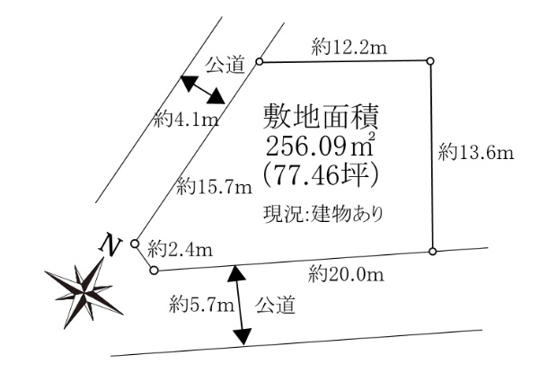 敷地面積256.09u(77.46坪) 角地!陽当たり良好!!