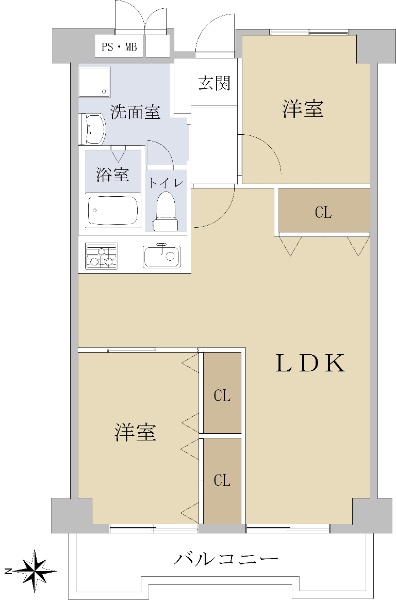 専有面積75.35u 専用庭有り 南東向き陽当り良好