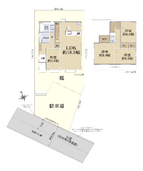 令和2年4月築、駐車場2台分&庭付き戸建!南西側公道に接道の土地面積46.89坪!
