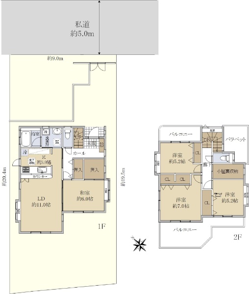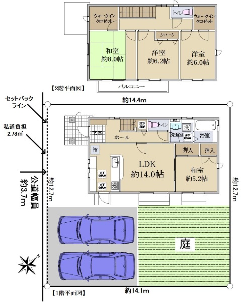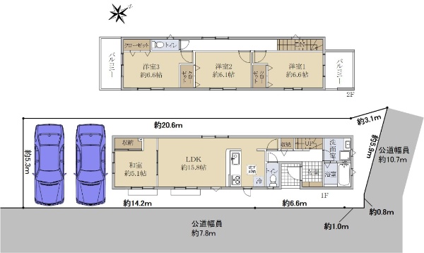 ・全室南東向きにより陽当り良好、カースペース2台分(車種による)