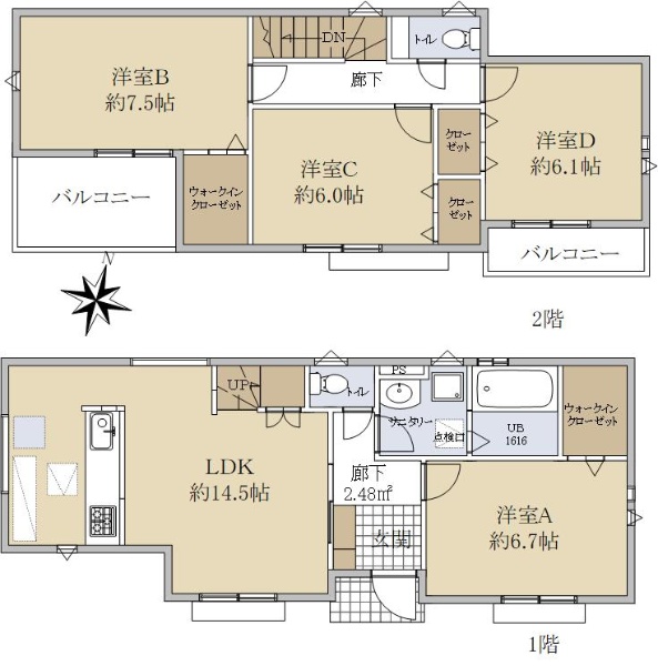 2022年築 間取り4LDK 庭付き住戸です。