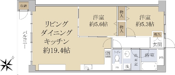 南東・北東の角部屋!LDは2面のバルコニーに面し明るく開放感があります。