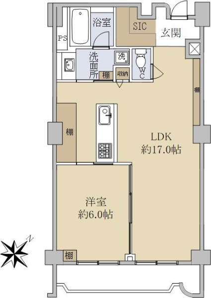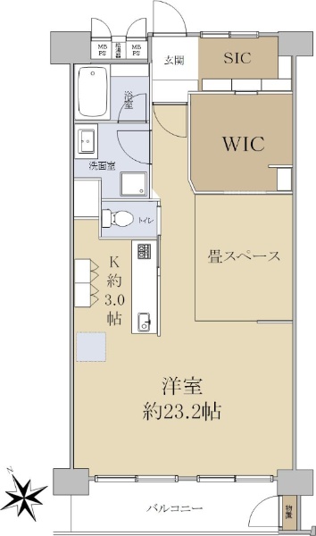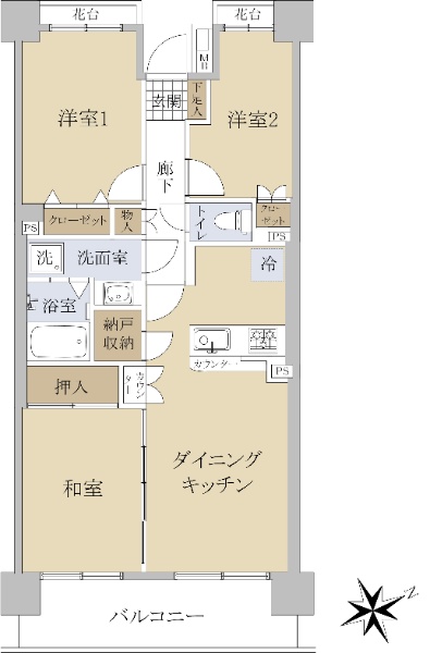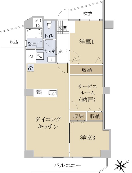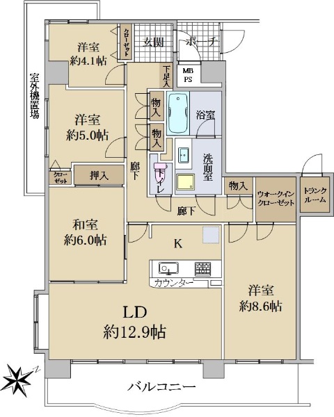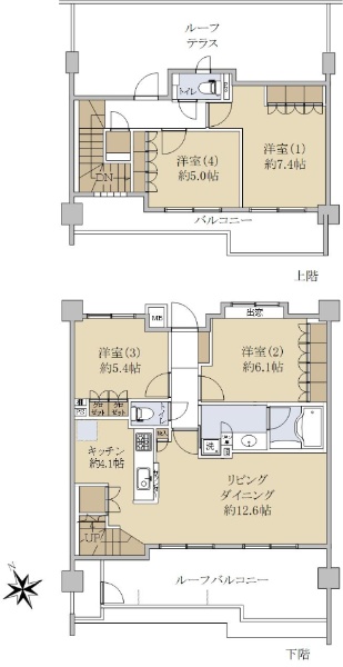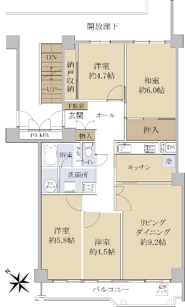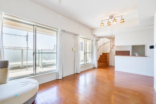 最上階・メゾネットタイプ住戸。南西向きバルコニーにつき陽当り良好です。