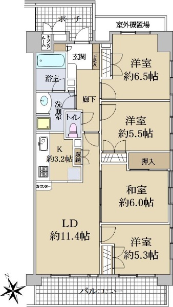 武蔵野線「市川大野」駅 徒歩17分/4LDK/南西向きバルコニー