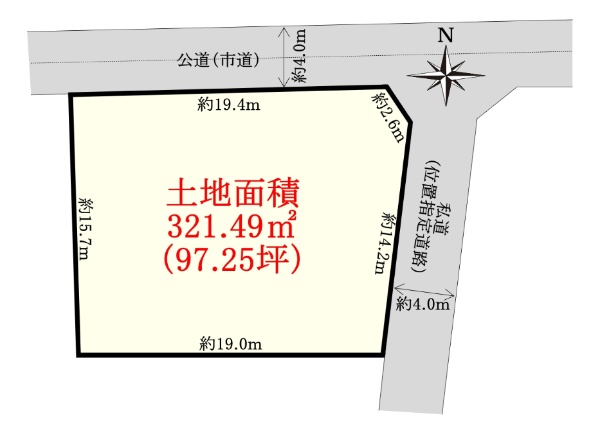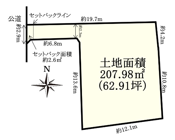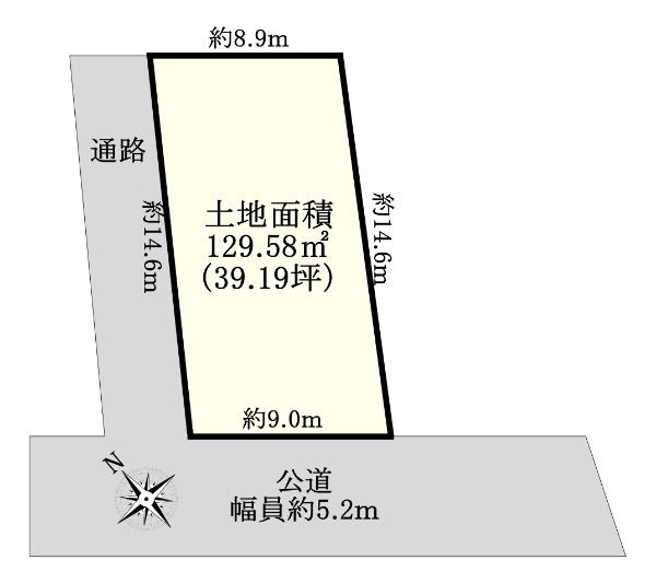 南西側公道幅員約5.2mに接道の39.19坪の売地!