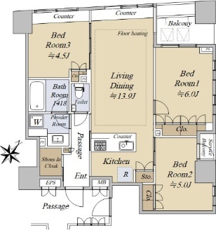北西・北東角部屋/3LDK/68.48u/2014年築/久松小学校
