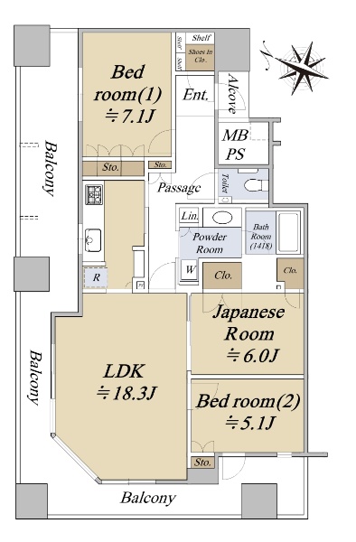 ■南向角部屋■19階建16階部分■72.61u(2LDK)■担当:城本