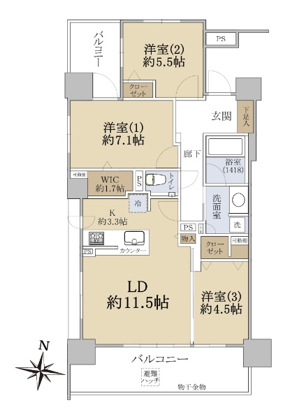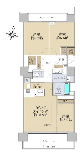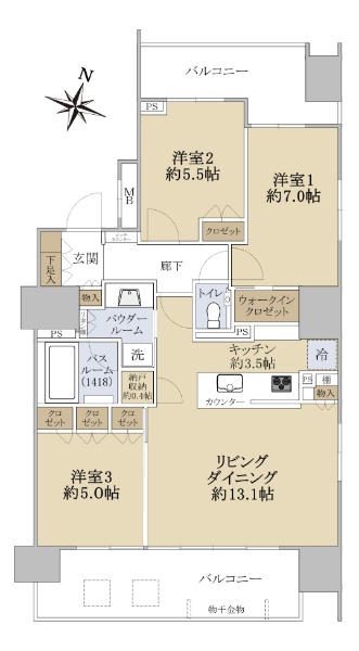 ◆両面バルコニー ◆3LDK+WIC 93.90u ◆共用部充実
