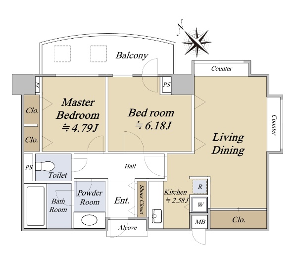 新築時売主/三井不動産 南東向き 専有面積58.21uの2LDK
