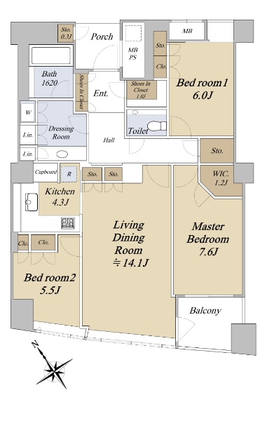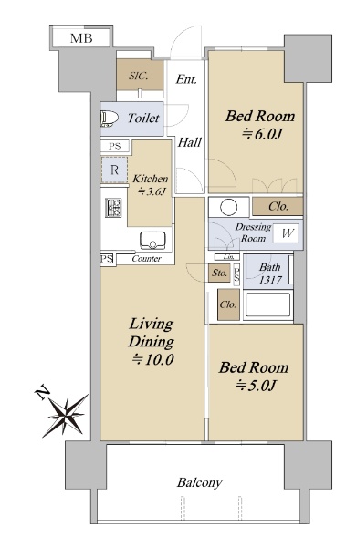専有面積53.94u 1LDK 南西向きのお部屋です