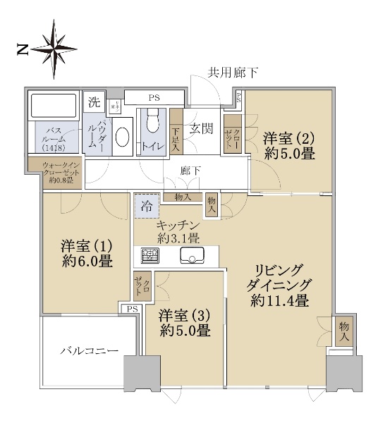 ■南・西角住戸 ■間取り:3LDK+WIC ■専有面積:71.28u