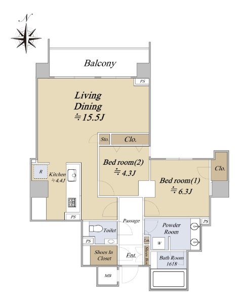アイ・マークタワー 月島駅徒歩1分【6階部分の1LDK 62.64u】