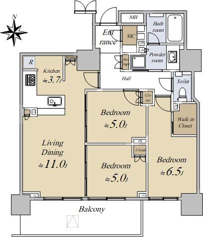 ●10階/北×西角住戸 ●3LDK+WIC+SIC/専有面積:81.00u