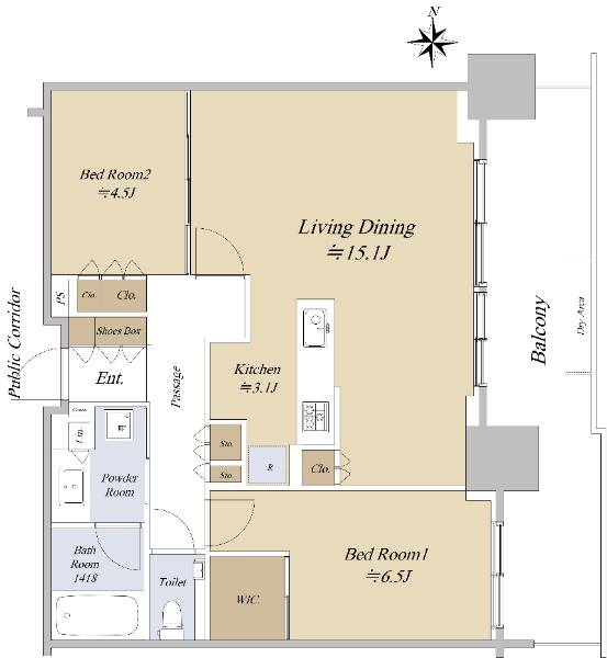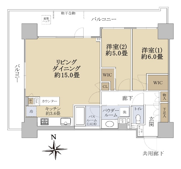 ◆15階/北・西向き 角住戸/2LDK+2WIC