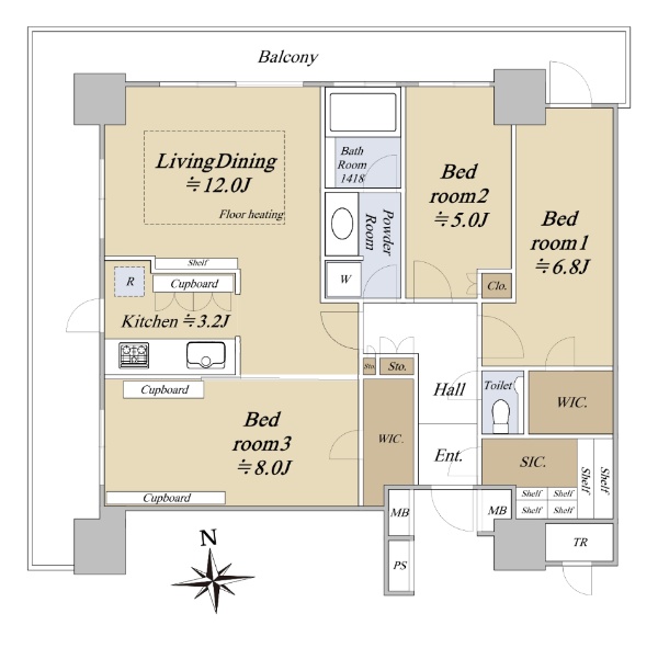 ●10階/北×西角住戸 ●3LDK+WIC+SIC/専有面積:81.00u