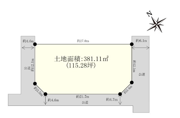 土地面積/381.11u(115.28坪)〜建築条件付土地ではありません〜