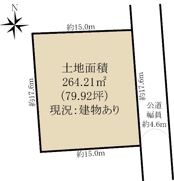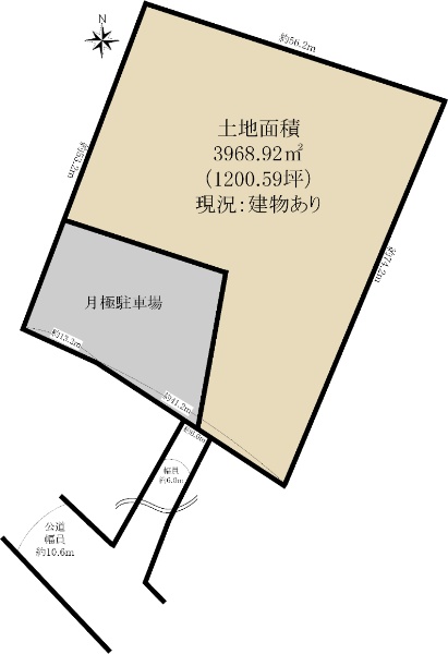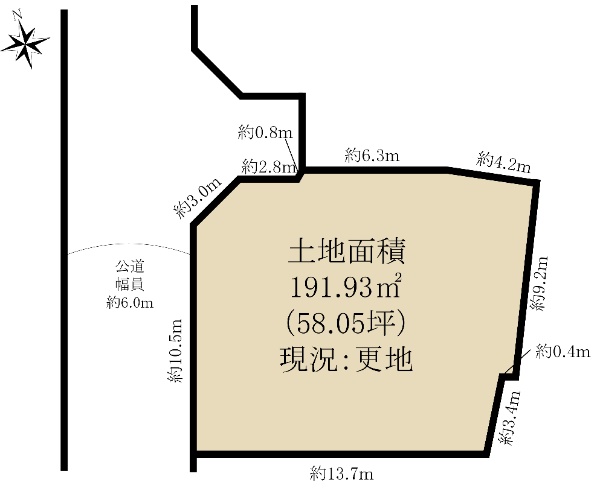 土地面積:215.96u(65.32坪) 北側約6.0m公道(間口約13.5m)に面する。