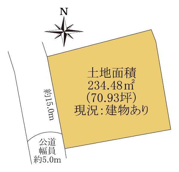 土地面積83.57坪!南東道路公道約5.9m、北東道路公道約9mに面する物件です。