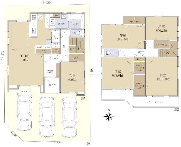 4LDK×南向き×駐車場2台分(車種による)