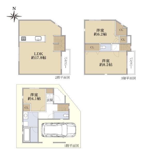 ■駐車スペース3台分 ※車種による ■整形地角地