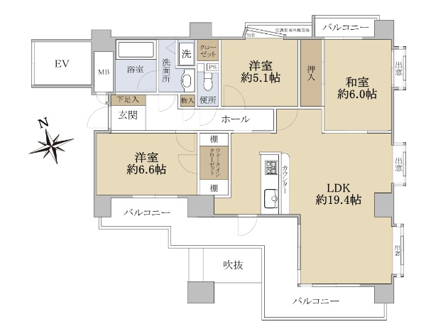 ◆専有面積:75.06u(22.70坪)◆南・東角住戸につき通風、日当たり良好