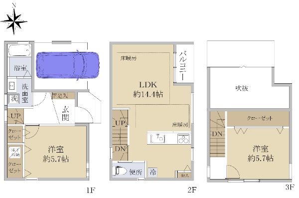 ☆令和3年11月築 木造3階建 東向き陽当たり良好☆