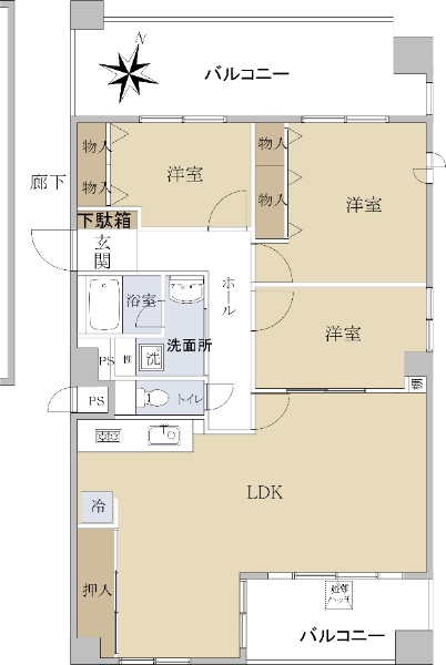 ◆間取り3SDK ◆1978年7月建築 ◆南西向きバルコニー