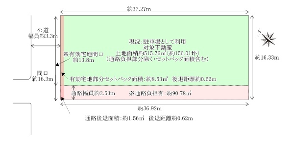 【建築条件なし】北西・南の二方接道 土地面積176.49u(約53.38坪)