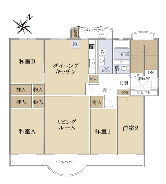 生活関連施設充実 北×東角部屋につき日当たり良好 2LDK住戸