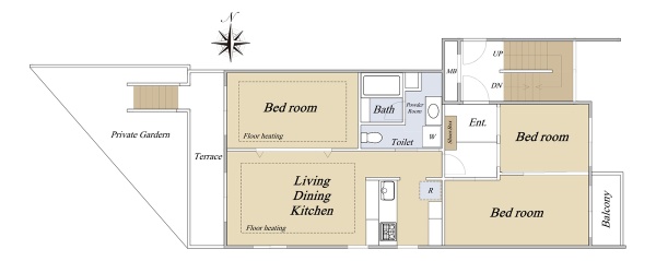 1階角部屋、専用庭付き、閑静な住宅街に佇む3LDKのマンション