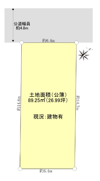 ■間口約6.4m 北西側公道の整形地です(古家有)