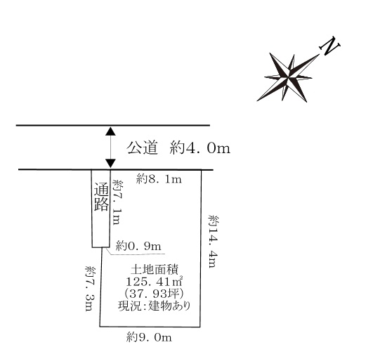 土地面積276.66u(83.68坪)、南側接道幅員約4.0m、接道間口約4.0m