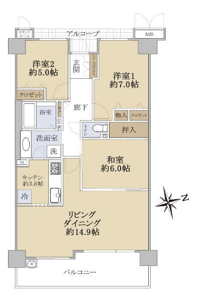 ☆角住戸 3面の引き回しバルコニー☆