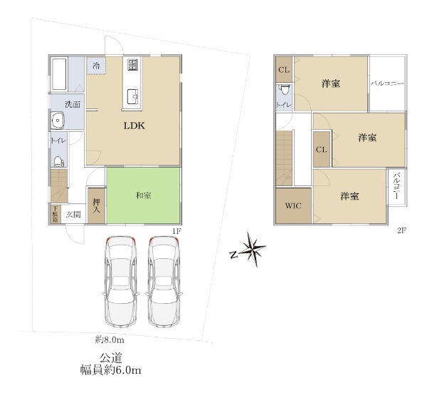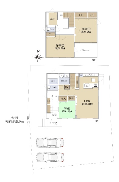 ◆土地:305.99u(92.56坪) ◆北・東の2方向道路に接道