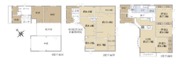 ☆敷地面積50.19坪 3階建5LDK 1階車庫付き