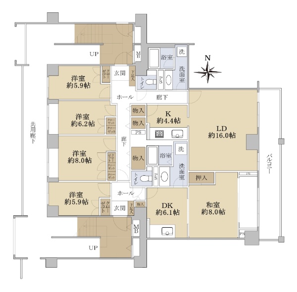 4LDKの間取り 角部屋 エレベーター各階停止