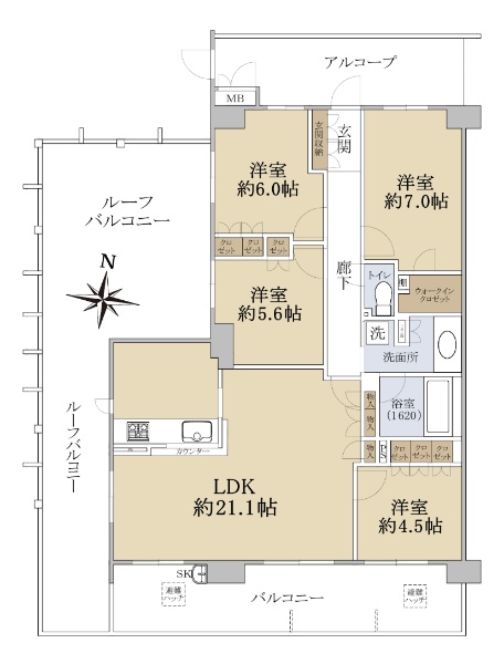 2016年2月築、南向き角部屋、ルーフバルコニー付き4LDKのお部屋 LDK:約21.1帖