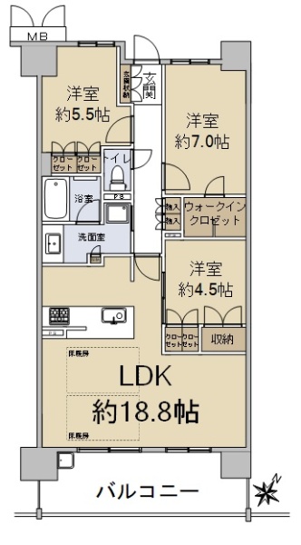 ●名谷駅徒歩8分 ●南向きバルコニーの3L・DK