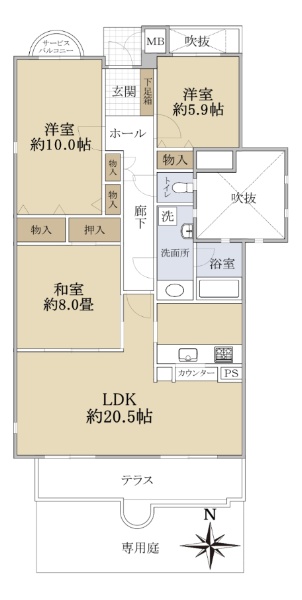 ペット飼育可マンション 専用庭付1階部分 LDK約20.5帖のお部屋