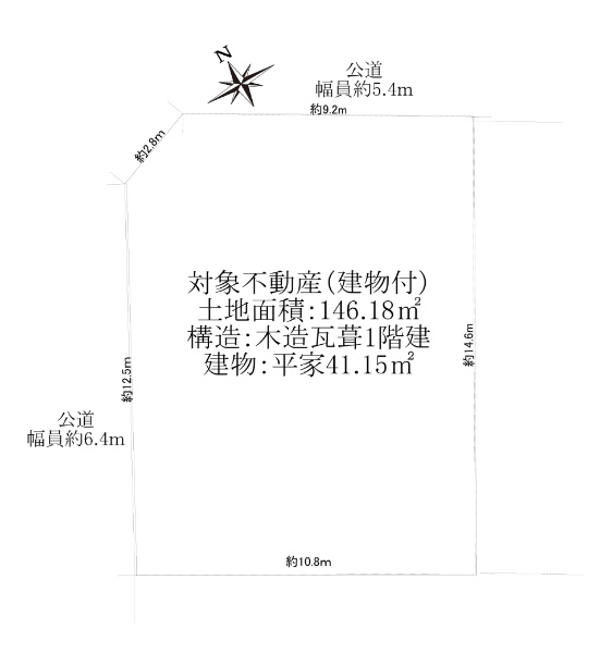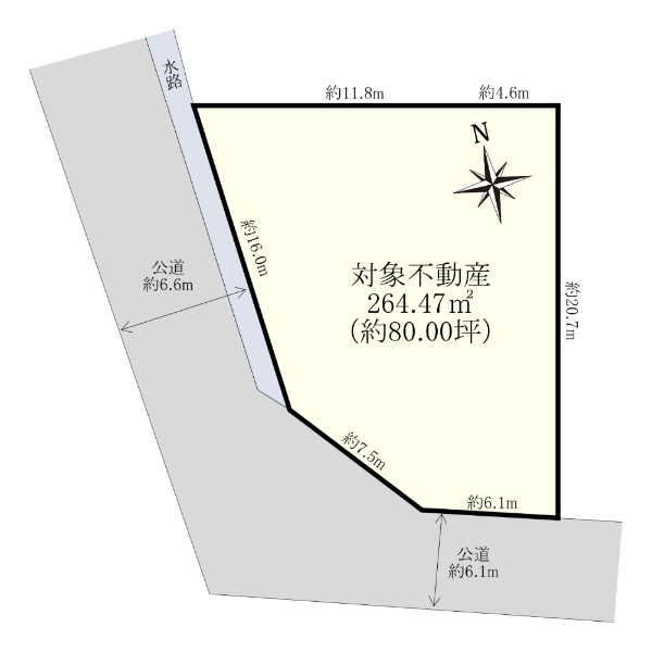 北西道路と南東道路に面する土地