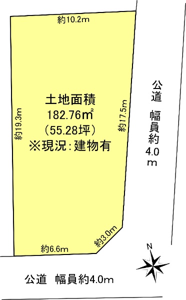 ◇整形地 ◇土地面積:400.66u/約121.19坪 ◇北・西側の公道に面する