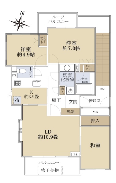 小田急線「和泉多摩川」駅まで徒歩12分 東向き角住戸