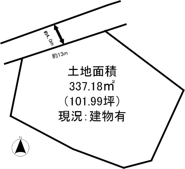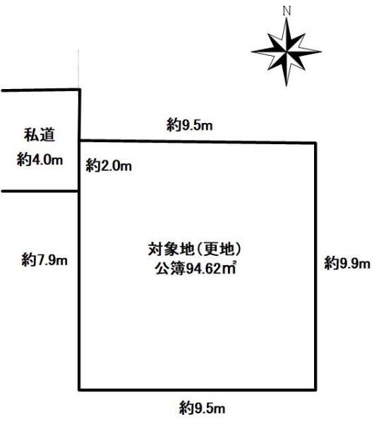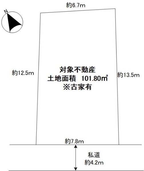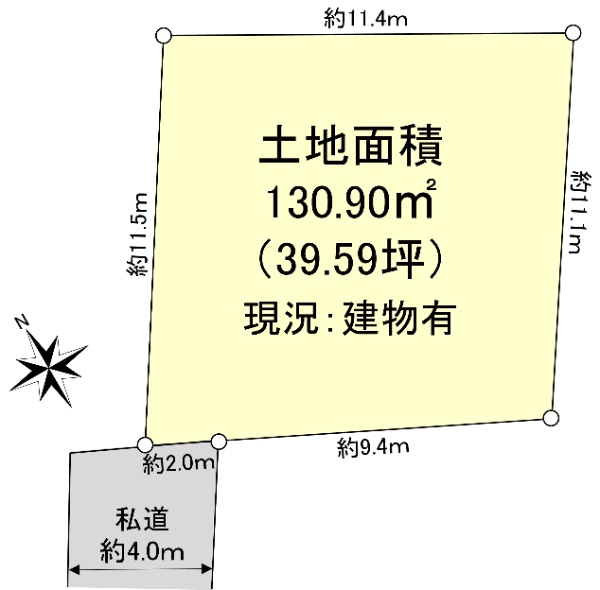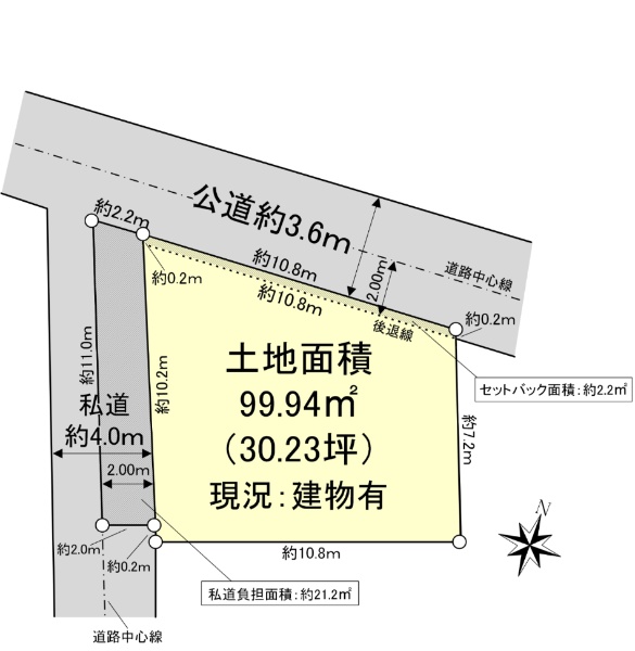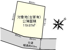 東武東上線「志木」駅徒歩16分、土地面積39.59坪、南西側私道に接道