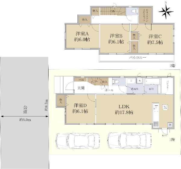 ◆2019年2月築 4LDK戸建 ◆LDK約17.8帖