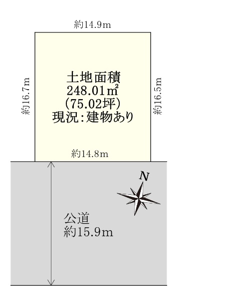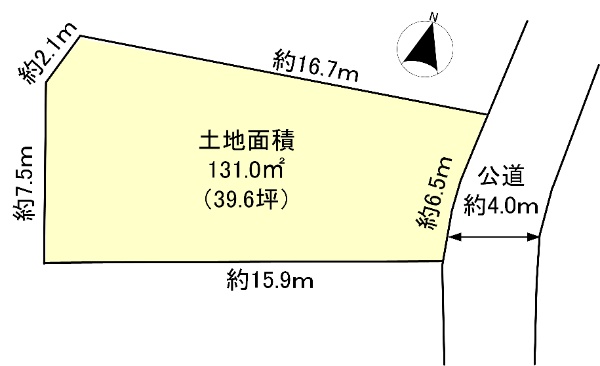 土地面積:156.53uの整形地、北西側約16.0m公道に面する