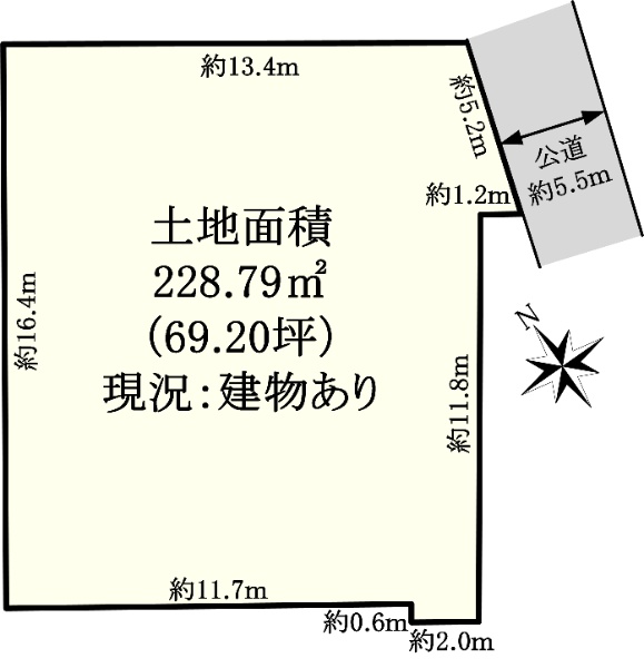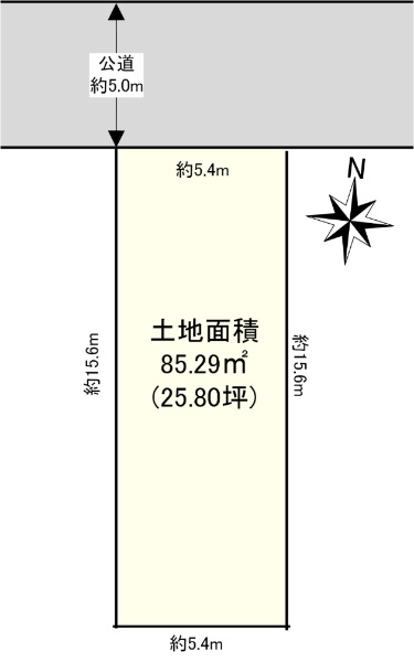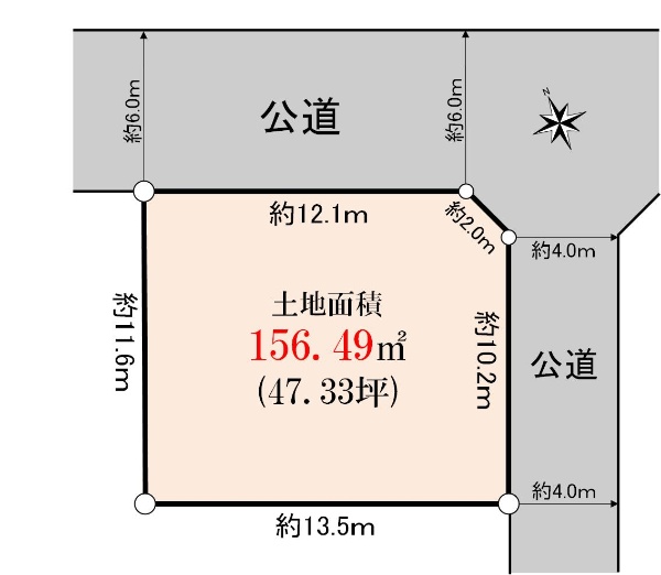 土地面積:156.53uの整形地、北西側約16.0m公道に面する