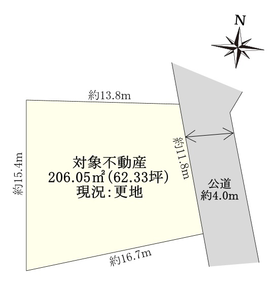 土地面積206.05u(62.33坪) 閑静な住宅街に立地
