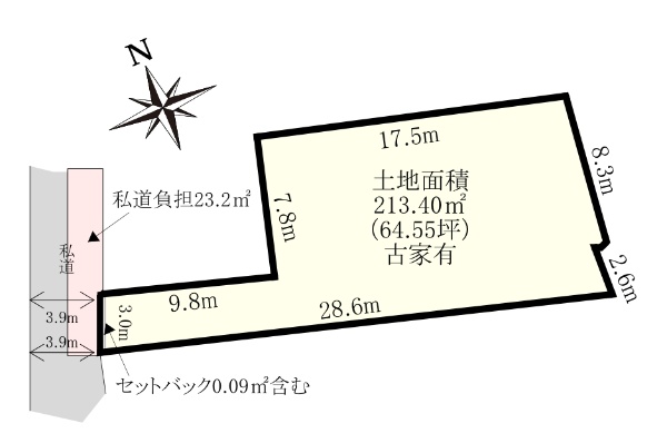 2駅3路線利用可能 私道約3.9mに約3.0m接する