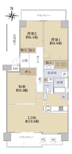 三方角住戸(東・北・西)! 専有面積90.10uの3LDKタイプ!
