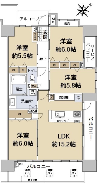 ◆専有面積:120.56u ◆4LD・K ◆三方角住戸